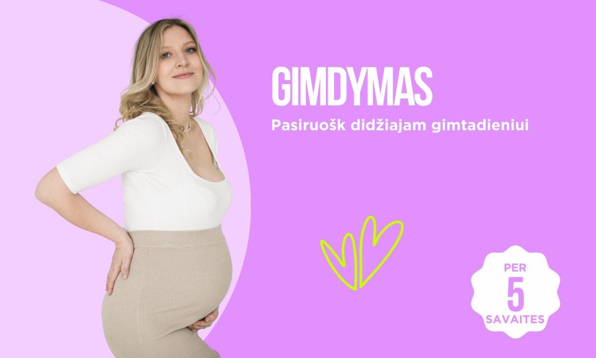 Kad žengtum į gimdymo palatą rami ir pasitikinti savimi. Šiame kurse rasi viską, ką turi žinoti kiekviena nėščioji: nuo pirmųjų nėštumo savaičių iki pirmųjų mėnesių su kūdikiu.